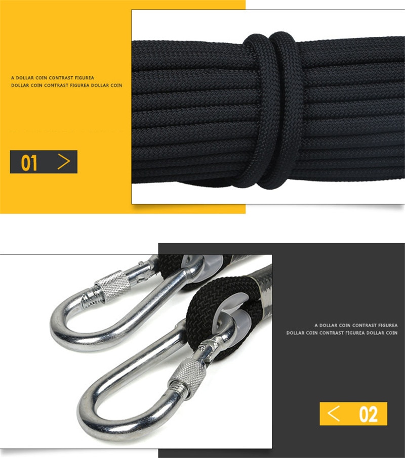 Professional Climbing Cord 12mm Diameter Length 10-100m 18KN High Strength polypropylene Paracord Safety Rope with 2pcs Buckle